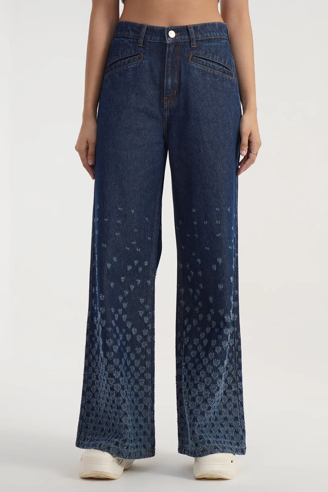 Wide-leg jeans are trending for their relaxed, youthful vibe and bold statement appeal. This style offers extra room for layering and creative outfits, often paired with chunky sneakers, oversized sweatshirts, or graphic tees.